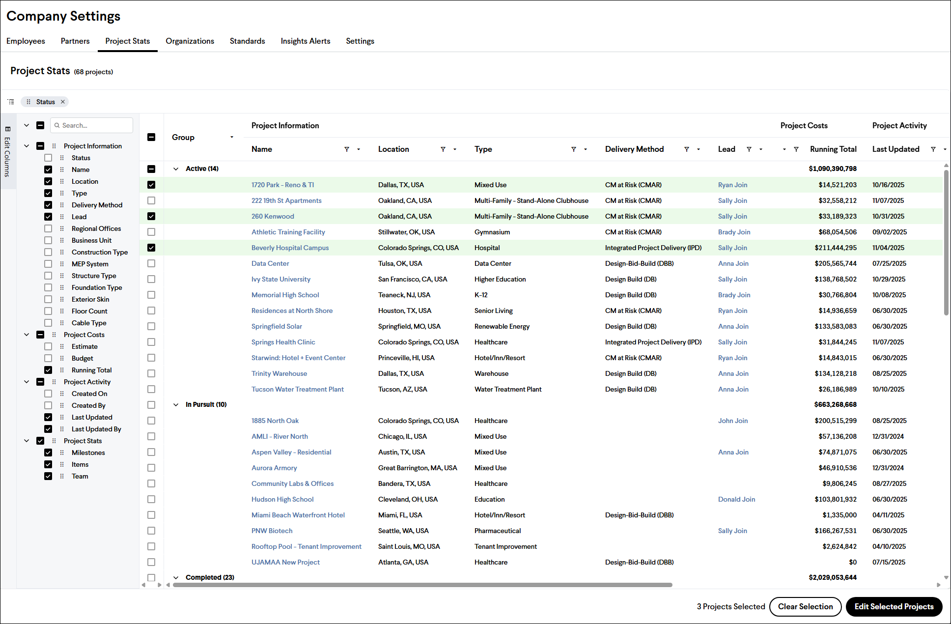 Company Administrators can manage the projects within their company from the Project Stats page.