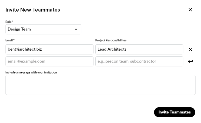 - If needed, add their project responsibilities (e.g. Drywall trade partner) and include a relevant message (these steps are optional).