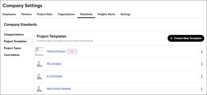 Create company standard project templates to quickly start new projects without having to fine-tune the settings you use for every project.