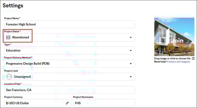 Join projects can't be deleted or archived, but you can remove it from the project list by removing all users from the project.