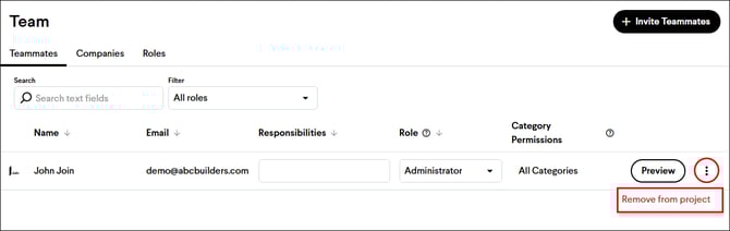 Note: Teammates will be notified via email and in-application notifications that they have been removed from the project.