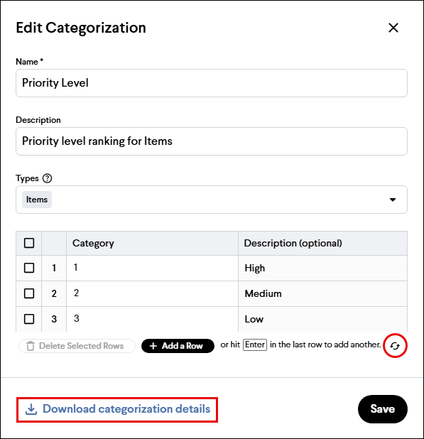 Note: Single-level Categorizations can be edited in-app or using the template, but multi-level Categorizations must be edited using the template.