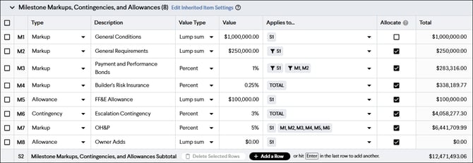 Markups are often overlooked when importing an estimate. Review them by selecting the Milestone Markups section in the Edit Estimate view.