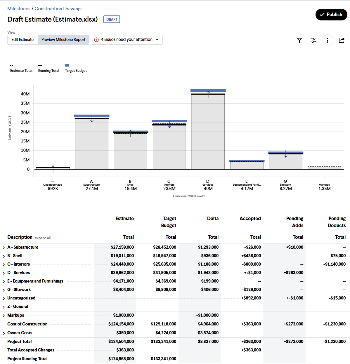 Now that the estimate is in tip-top shape and mirrors what was in the estimating platform, it is time to publish the estimate and make it available to the rest of the project team.
