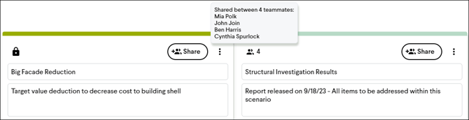 - Click the Share button at the bottom right. The Scenario will now be visible and editable to the selected teammates on their Scenarios page.