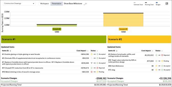 This view will focus on the changes made in each scenario for an easier comparison. You can turn off the Base Milestone to directly compare two potential paths forward or have multiple scenarios open to compare.