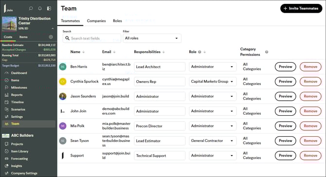 The Team page is where you'll get a view of your project team, their roles, and permissions.